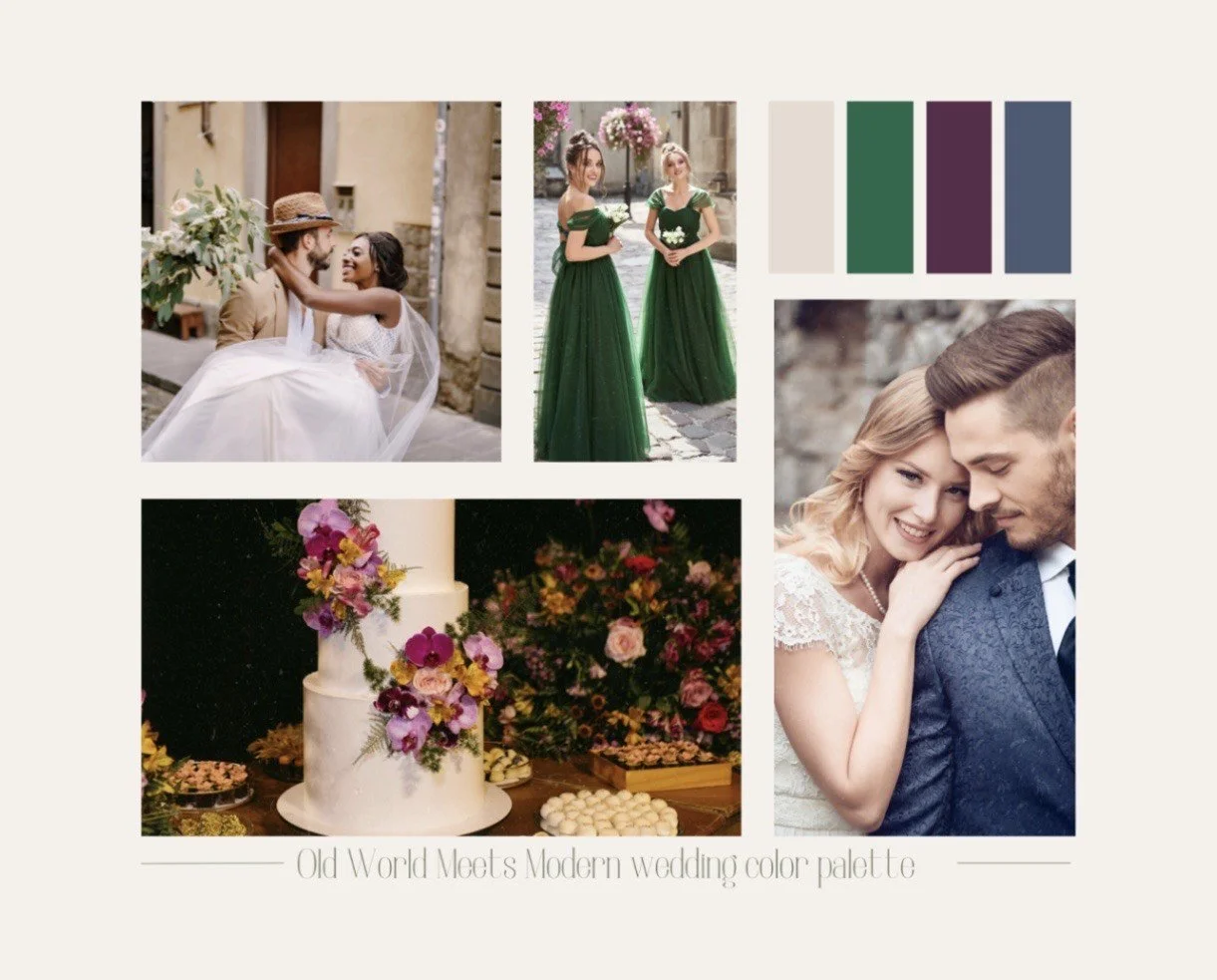 This palette is ideal for couples who want their wedding to feel joyful, elevated, and unforgettable.
